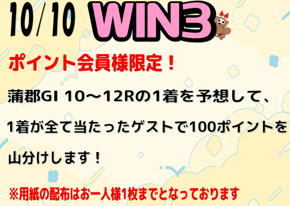 ◆【10月10日(金) 蒲郡GⅠ オールジャパン竹島特別 WIN3