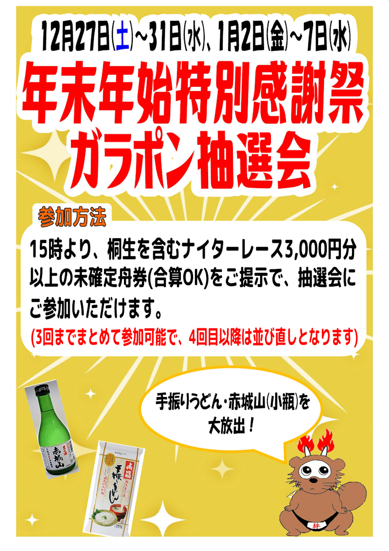 1月2日(金)~7日(水) 年末年始特別感謝祭ガラポン抽選会