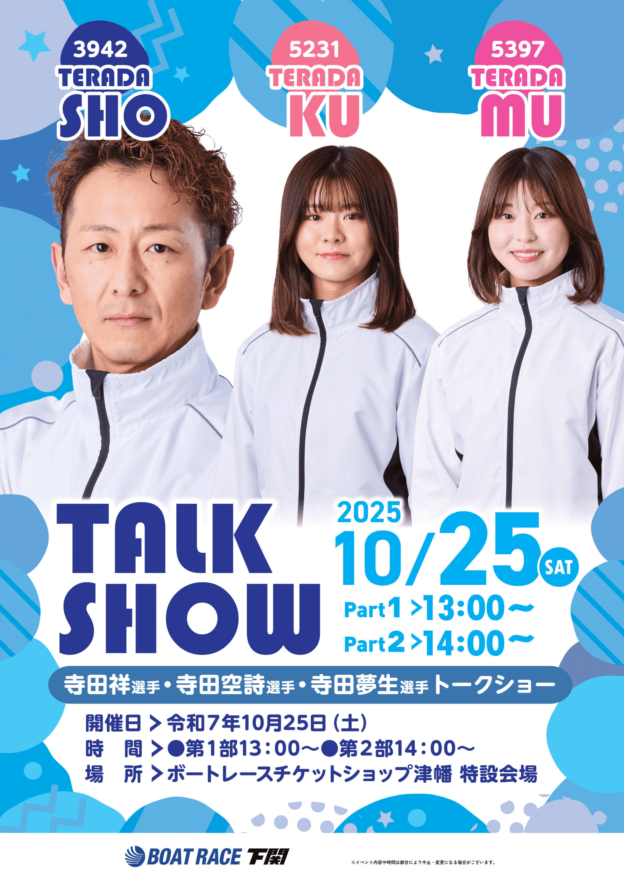 10/25(土)は、寺田祥選手・寺田空詩選手・寺田夢生選手のトークショーを行います。