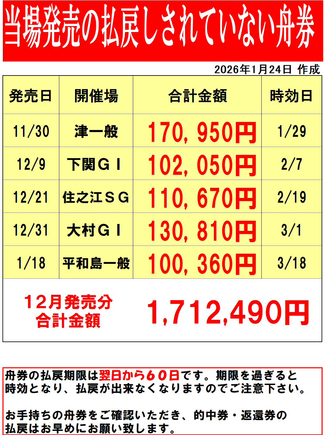 1/21(水) BR丸亀の開催は第7R以降が中止・打切りとなりました!
