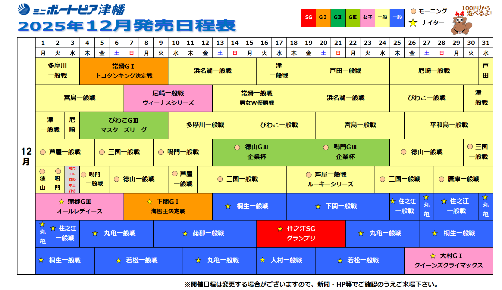・12/3(水):鳴門は荒天の為、中止打切りとなりました。